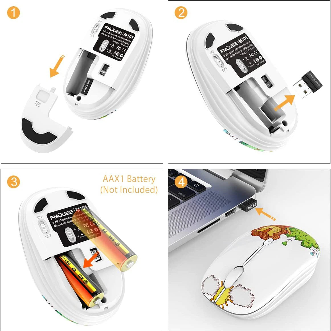 No need install extra software, simply plug and play. Colorful design is suitable for modern young people and children.(Note:The USB receiver is hidden in the battery compartment, you need take it out and plug into your PC USB slot).