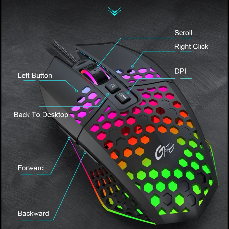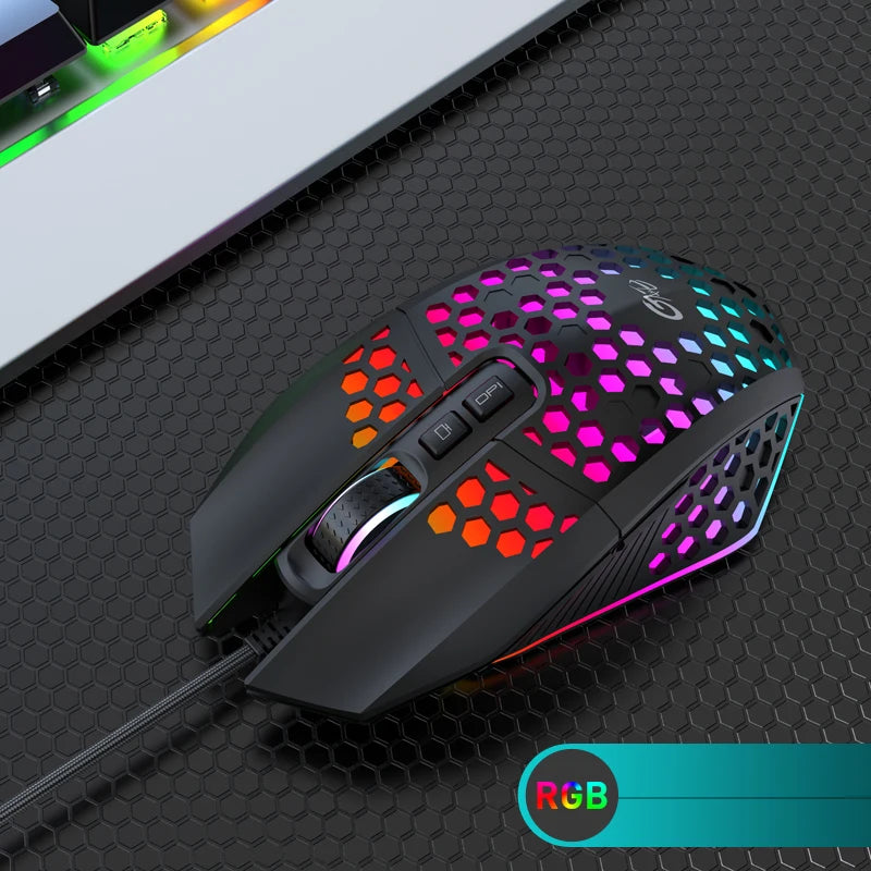The mouse uses a unique hollow honeycomb design, ergonomic design and skin-friendly surface offers comfortable grips and better gaming experience, long time using and playing without fatigue.